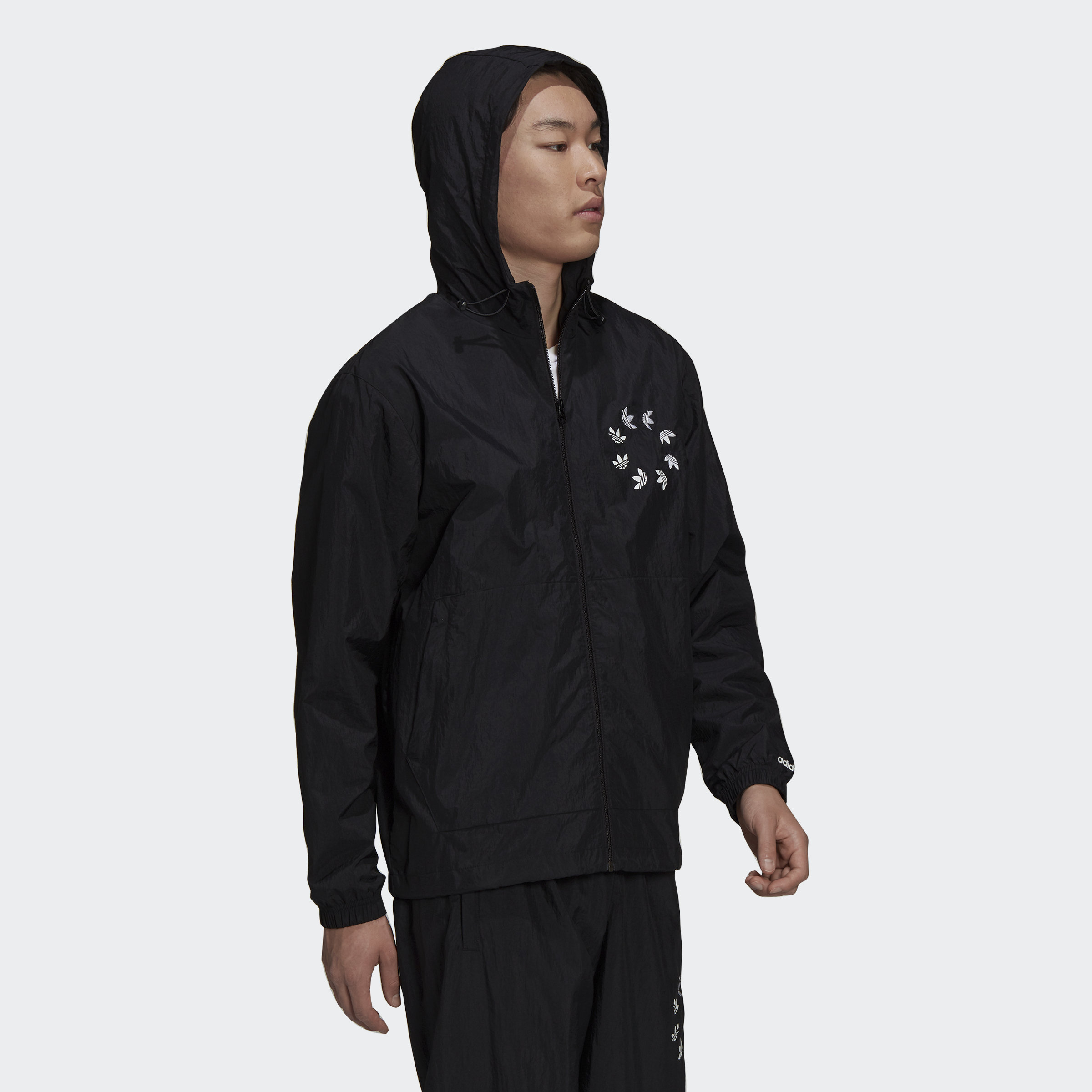 A little wind won't slow your roll. Not when you're layered up in the lightweight fabric and authentic style of this adidas windbreaker. Zip in and step out flashing a swirl of Trefoils. A nod to your creative spirit. Adjustable details help keep out blustery air. This product is made with Primegreen, a series of high-performance recycled materials.