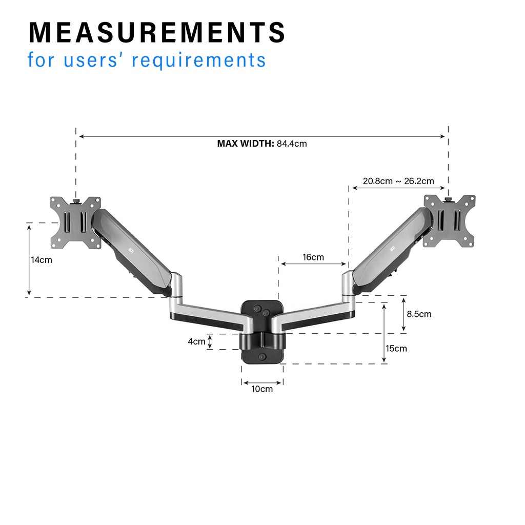 ULTi Dual Monitor Wall Mount, Gas Spring Built-in Full Motion Arm for Flat & Curved Screens, VESA, Cable Management, 32'