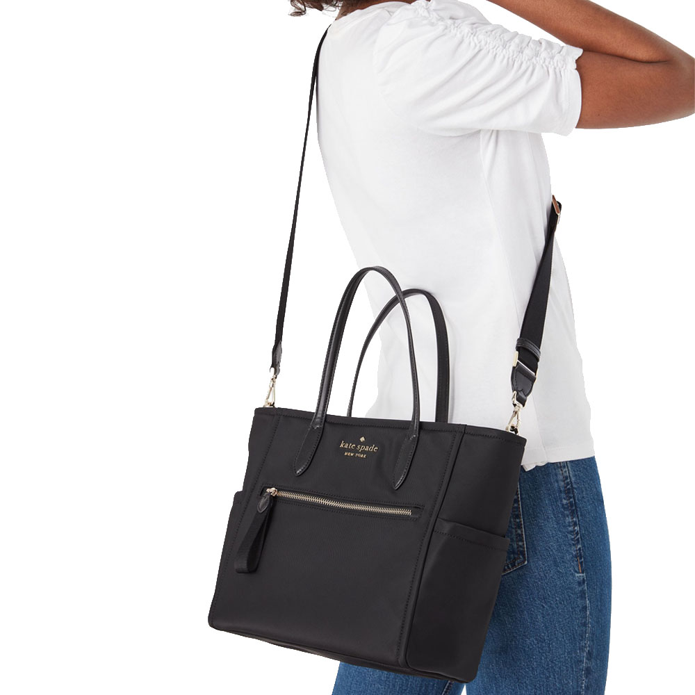 Exterior features top zip pocket, front zip pocket and 2 side pockets
