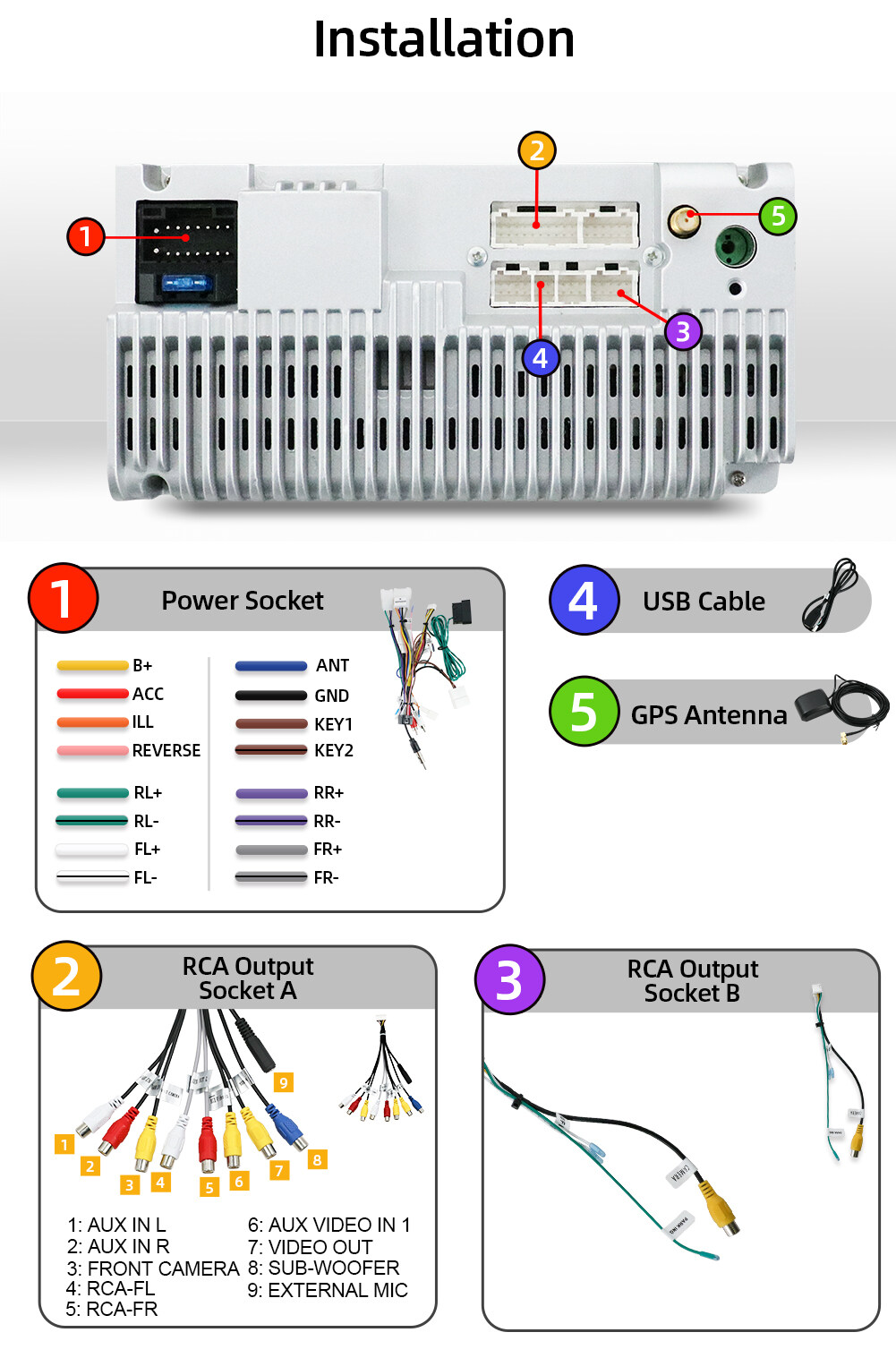 • 15:RCA cables for the subwoofer, power cable plug, and play, easy to install