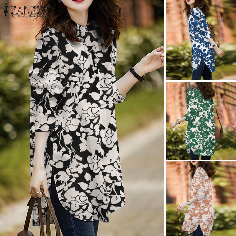 ZANZEA Womens Floral Print Vintage Blouse Long Sleeve O Neck Summer Holiday Shirt Tops #7