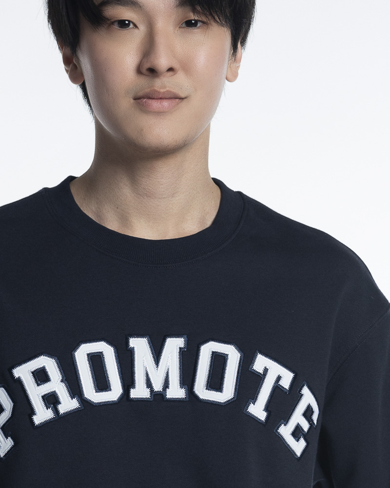 Regular Solid Colour Long Sleeve Sweatshirt with Round Neck. Comes with "Promote" Slogan Embroidery Patch at the front.