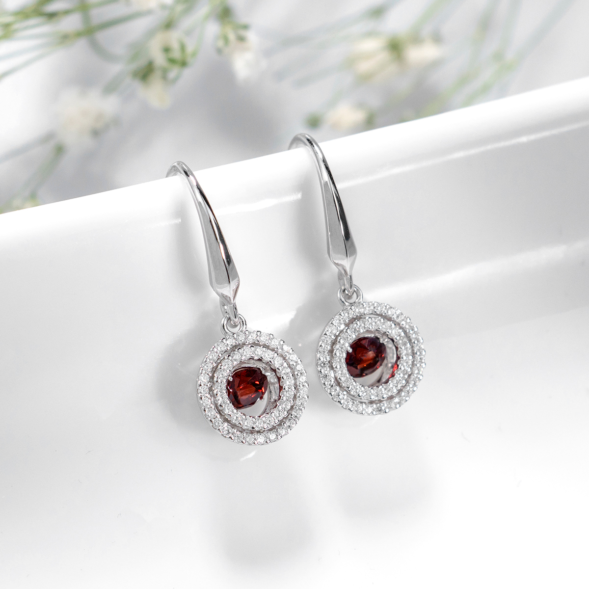 Original Sterling Silver 925 Drop Earring Natural Red Garnet Gemstone Elegant Style Women Jewelry Birthday Gift